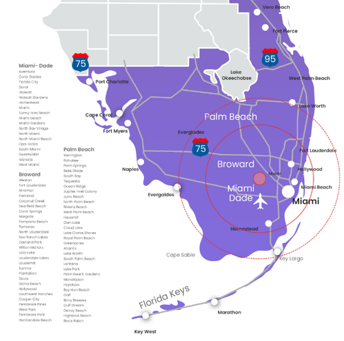 Almavisión Miami 87.7 FM es la estación cristiana de mayor cobertura en el Sur de la Florida, con presencia comprobada en los tres condados más influyentes de la región: Miami-Dade, Broward y Palm Beach.